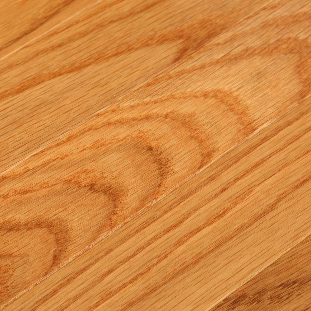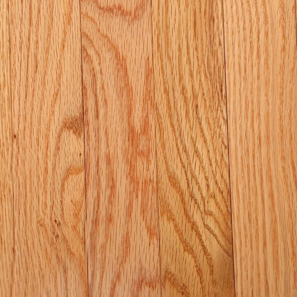 - Prefinished Oak Natural Light Color with a Satin/Mid-Gloss and a Traditional Finish