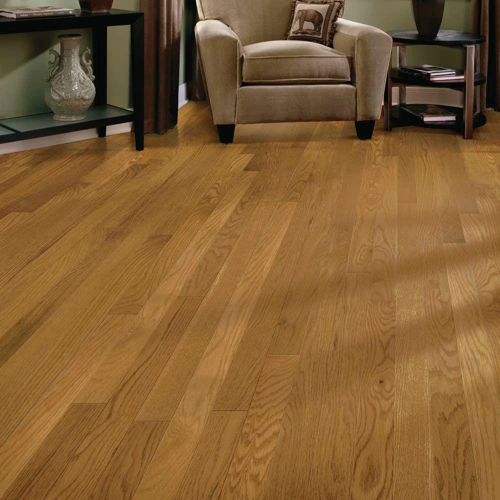 Get the warm, rich look of Oak flooring โ Americaโs most popular species โ with the Bruce Laurel collection. In 2-1/4 in. width for a classic visual, the random length planks bring additional dimension to your room. The robust grain characteristics of Oak hardwood add a touch of rustic character. Laurel features a 15-year Limited Warranty and protection from every day wear and tear with our DuraLuster Finish. Laurel hardwood floors are made with more than 90% domestic content.