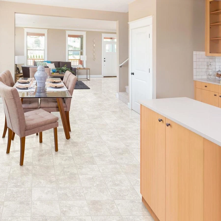 Tough wear layer and dense construction offering protection against rip, tear, gouge and indent