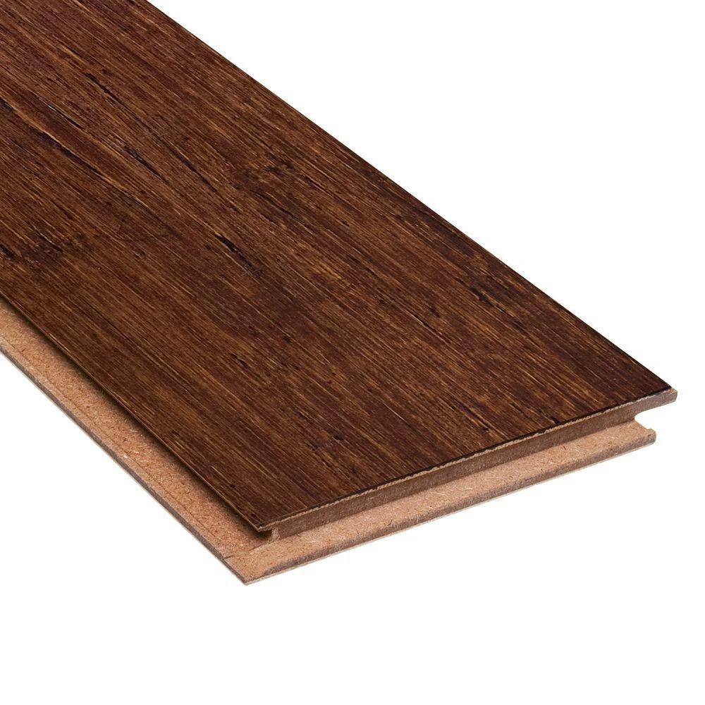 Strand Woven High Density Fiberboard (HDF) 3/8 in. Bamboo Flooring is popular for its supreme durability and extreme hardness with a janka rating of 3,000. The prefinished flooring has a 7-layer aluminum oxide finish providing protection from every day wear. This product has achieved GREENGUARD Indoor Air Quality Certification and has been tested for more than 10,000 volatile organic compounds, including formaldehyde, to meet these standards. The glueless installation is easy and economical; above grade, on grade and below grade. It’s the perfect choice for residential and light to medium commercial use.