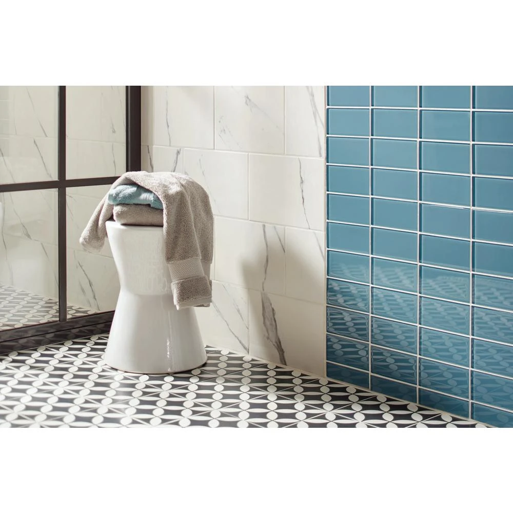 Add unique detailing to the wall or backsplash in your kitchen or bathroom with the Jeffrey Court Caribbean Water Gloss Glass Wall Tile. The tile pairs beautifully with other complementary stone or ceramic field tiles to create a dramatic effect that coordinates with any decor scheme. Perfect for upgrades and renovations, this 1 sq. ft. pack is designed for indoor use to lend elegance, personal charm and added value to your home.