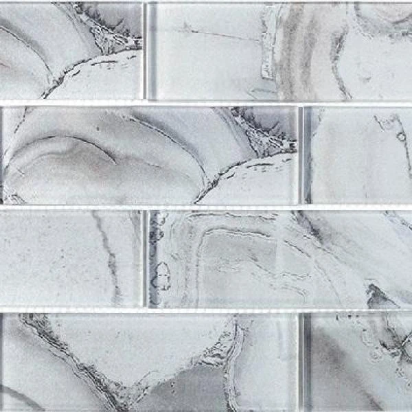 Geode Brick 11-5/8 in. x 11-3/4 in. Glass Mosaic Tile adds unique style to your bathroom or kitchen. This mesh-mounted interlocking mosaic features rectangular glass pieces in a gloss finish set in a brick pattern. Each piece has a unique pattern replicating the look of natural stone. Recommended for kitchens, backsplashes, showers, accent walls, tub surrounds, and vanities. For best installation results, use white polymer-modified thinset and non-sanded grout.