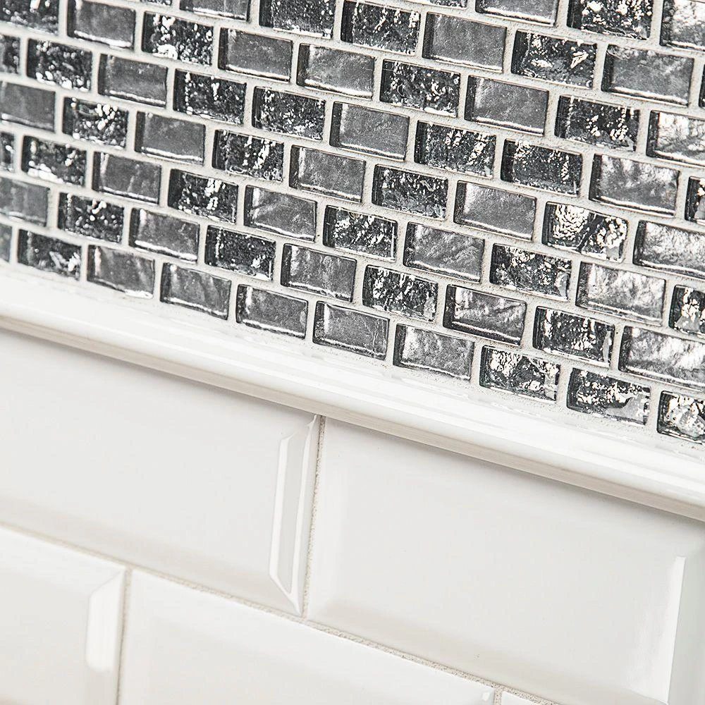 Jeffrey Court’s Glass Wall Tile can be installed alongside stone or ceramic field tiles (sold separately) to create a coordinated look. Mesh-mounted mosaics can be used as a whole sheet or cut to make affordable feature strips. Penetrating sealers recommended before grouting. Recommend white “polymer-modified” thinset and non-sanded grout for best installation results.