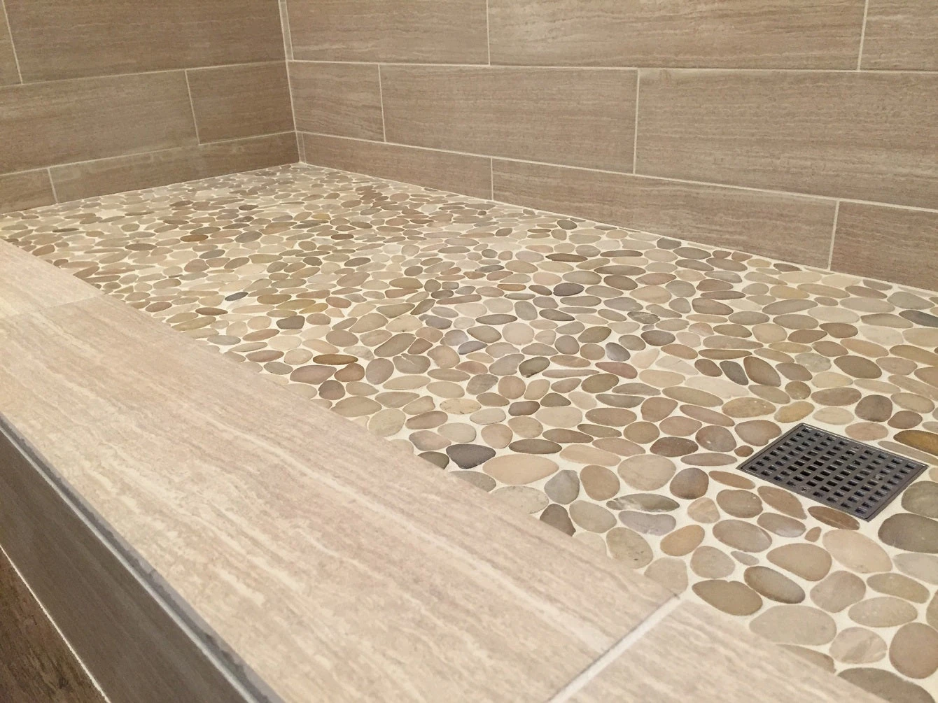 Rainforest Tan Honed Sliced Pebble Floor and Wall Tile Rain Forest Tan Honed Sliced Pebble Stone Floor and Wall Tiles incorporate smooth beautifully polished mixed pebbles mounted to a flexible mesh backing. Perfect for interior or exterior projects, Pebble Tiles create a beautiful and unique decorative mosaic look. Add a custom touch to all your floor and wall projects. Tiles are easy to install and use traditional tile grout.Rainforest Tan Honed Sliced Pebble Floor and Wall TileÂ