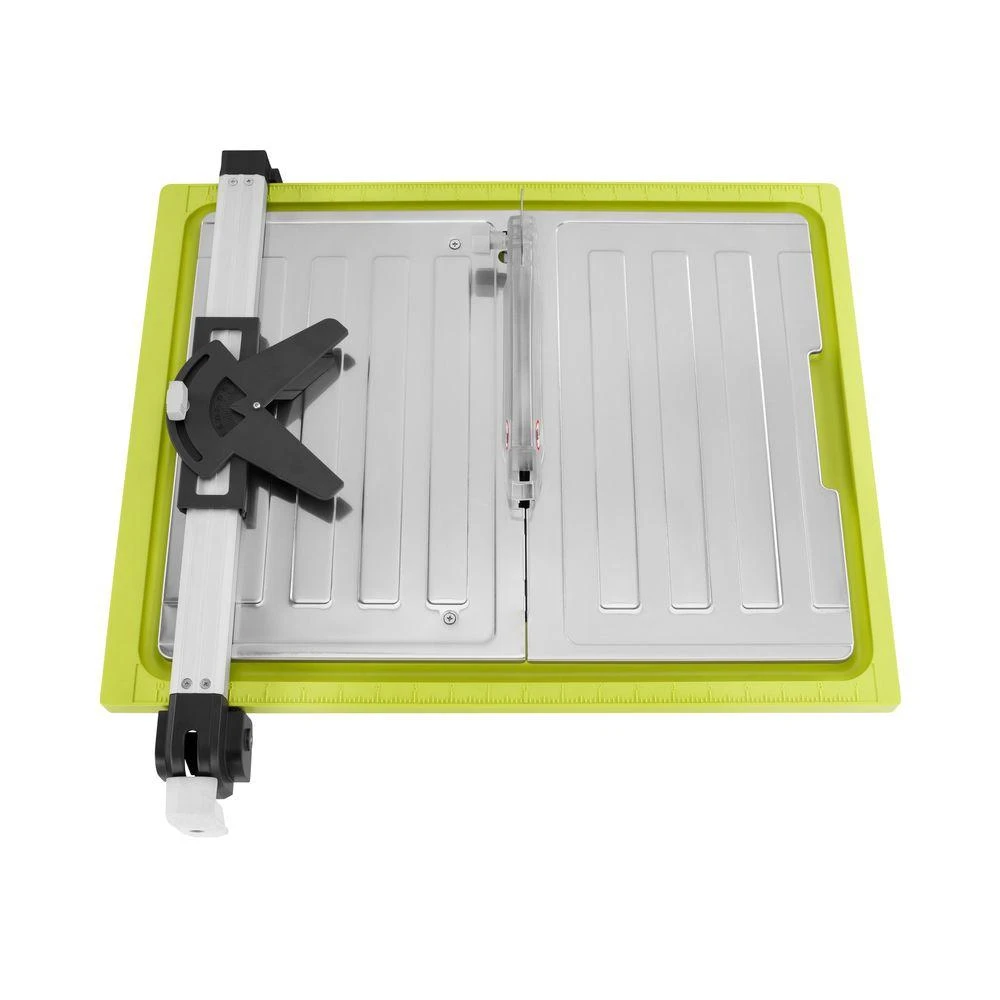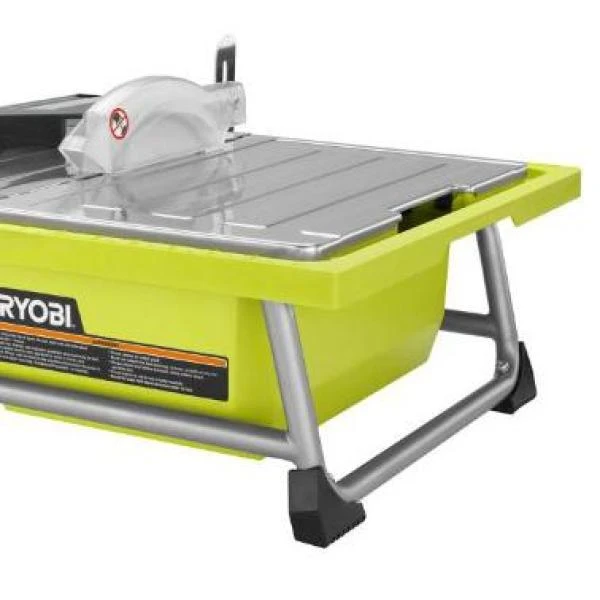 RYOBI introduces the 4.8 Amp Corded 7 in. Tabletop Tile Saw. The RYOBI 7 in. Tile Saw features portability with its compact size that is designed for fast and secure setup. This saw also features best in class cutting capacity with the ability to rip 20 in. tile and diagonally cut 13 in. tile. The tile saw cuts through ceramic, porcelain and stone tiles up to 1-1/4 in. thick with ease and accuracy. This saw has a tilting stainless-steel table to allow bevel cuts at 22.5ยฐ and 45ยฐ angles. The saw features a rip guide that locks in place on the front and rear rails to ensure precision cuts that are straight every time. Backed by the RYOBI 3-Year Manufacturer’s Warranty, this saw includes a 7 in. diamond cutting wheel, wheel wrench, arbor wrench, overfill drain, splash hood assembly, miter guide assembly, rip guide, and operatorโs manual.