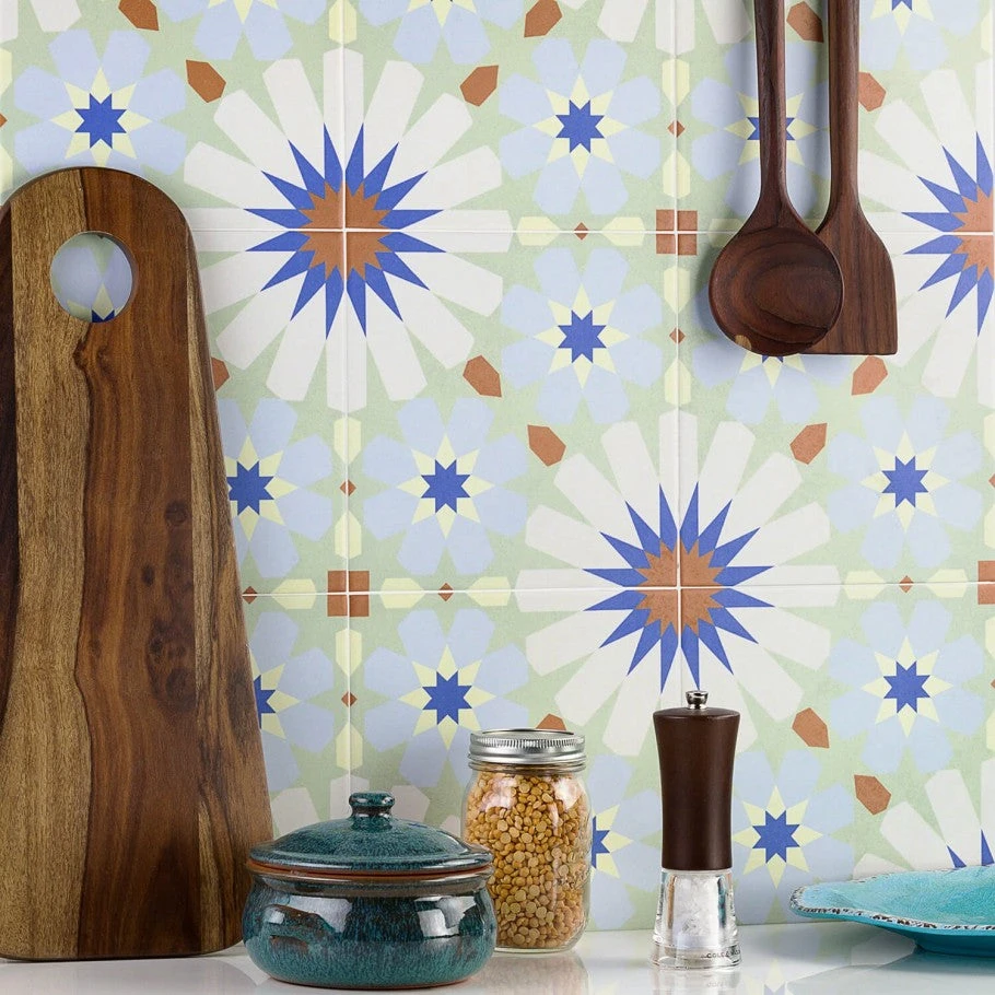 This collection is a unique new series of encaustic cement-look porcelain tile for an artistic flair that is truly one-of-a-kind. Inspired by the rich cultural aesthetic of Mediterranean design.ย This product contains 20 pieces per box, each box covers 10.76 square feet; This product is approved for Backsplash, Kitchen Floor, Kitchen Wall, Bathroom Floor, Bathroom Wall, Shower Wall, Shower Floor, Outdoor Floor, Outdoor Wall, Commercial Floor use; This product is approved for Indoor and Outdoor, Floor and Wall use.